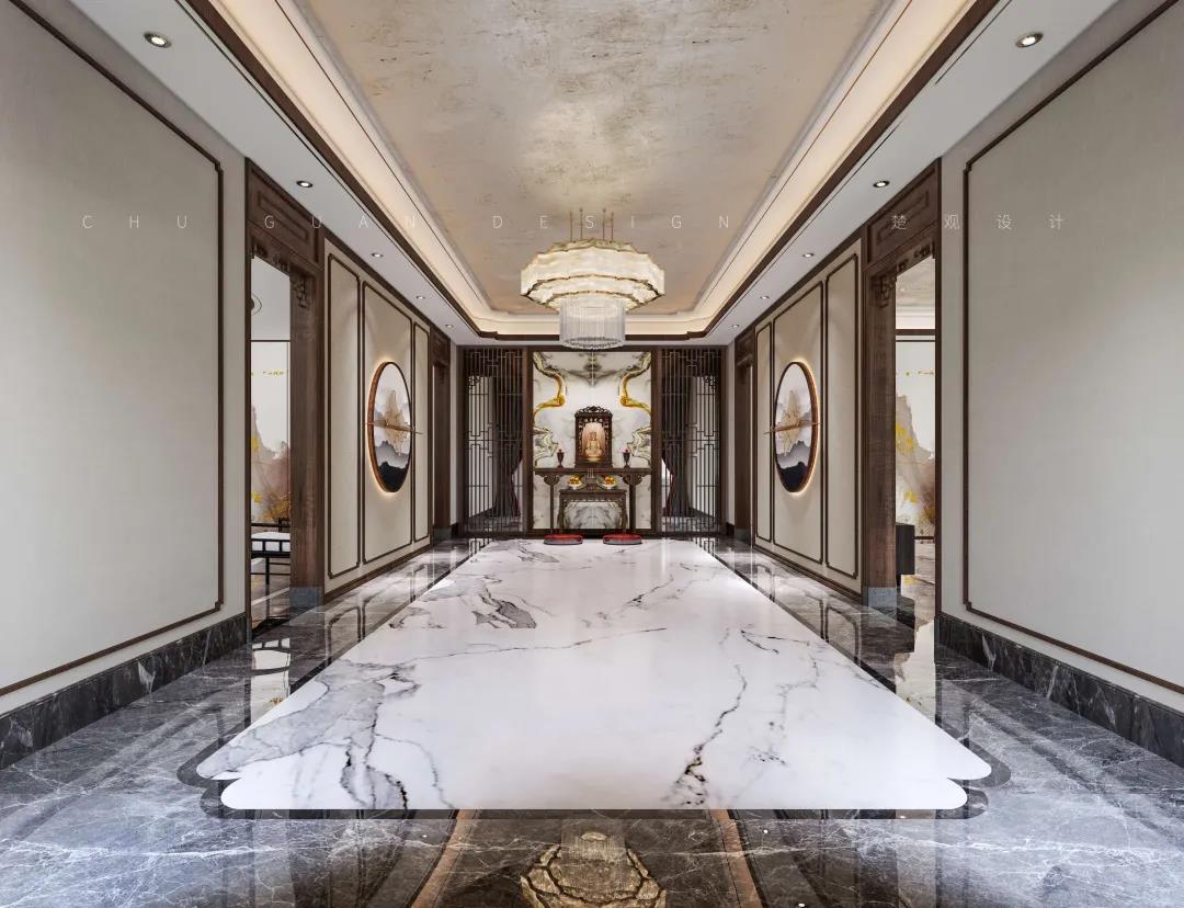 Demonstrate the ritual sense of hospitality space with abundant aesthetic characteristics, explain the contemporary space vocabulary with new Chinese style and customized lighting and