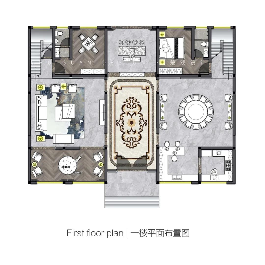 客户的装修要求是凸显品味,满足大家族过年相聚的娱乐、住宿需求,彰显家族氛围。同时女业主喜欢花草,希望能有大院子满足种植的爱好。