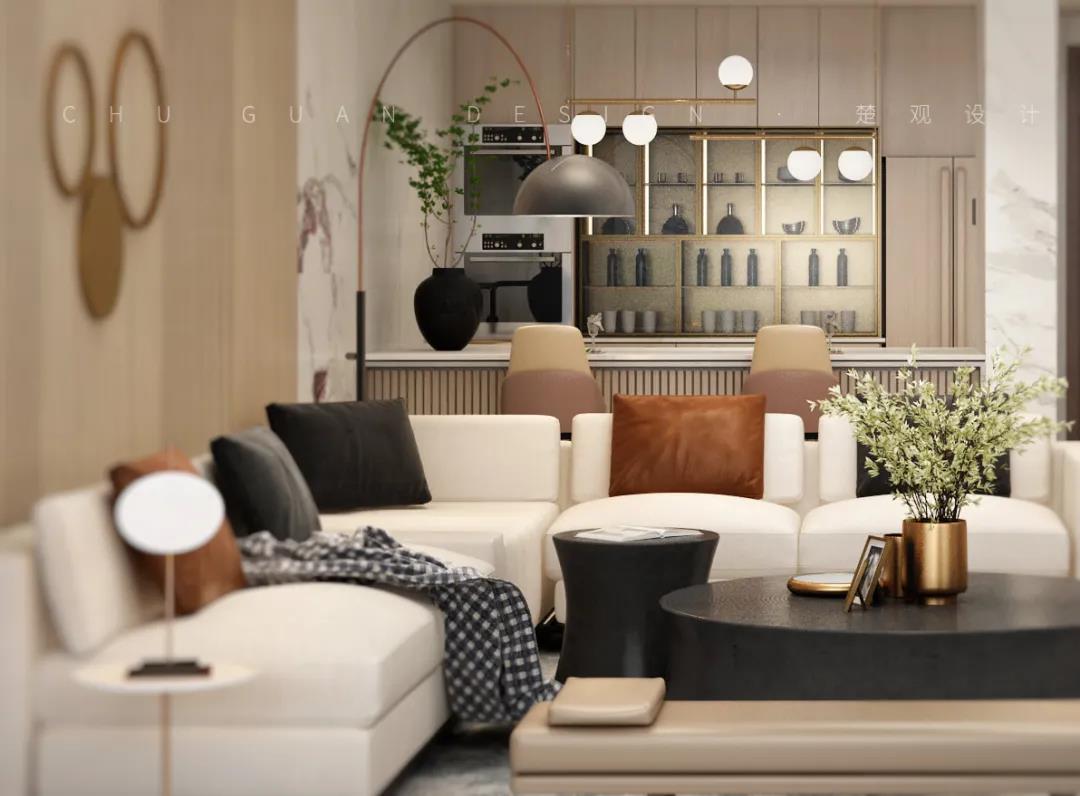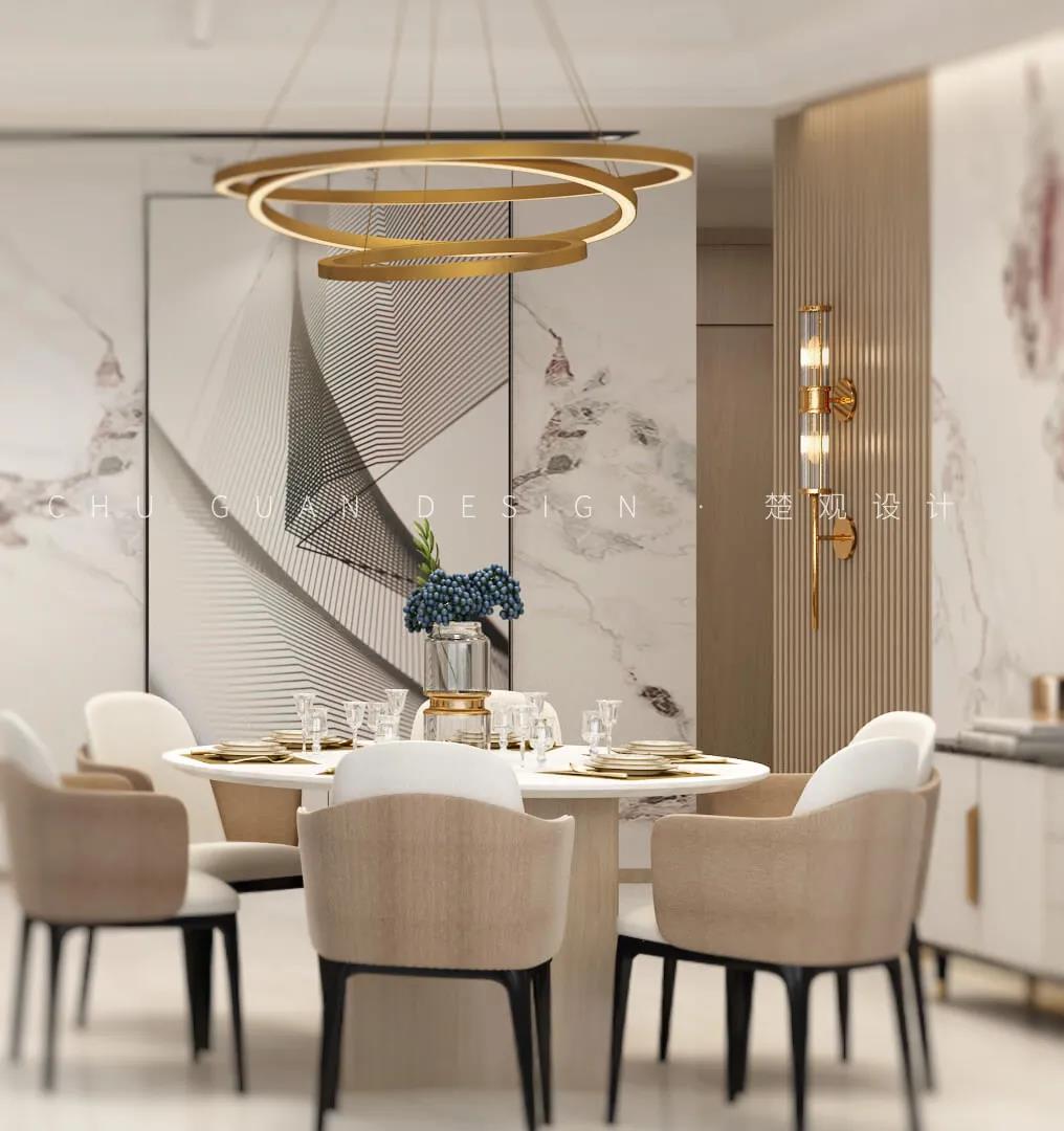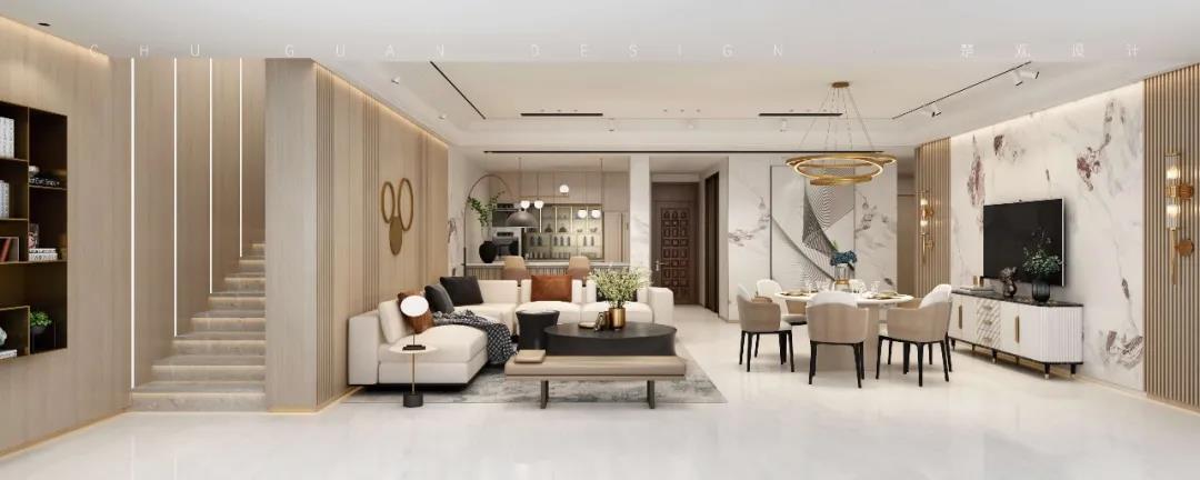 人对空间的追求是不断变化的,过去我们追求奢华的外在,而今,空间更多的关注人的内心以及人与人、人与空间的互动与情感的交互。空间之初,将客厅和餐厅融为一体,