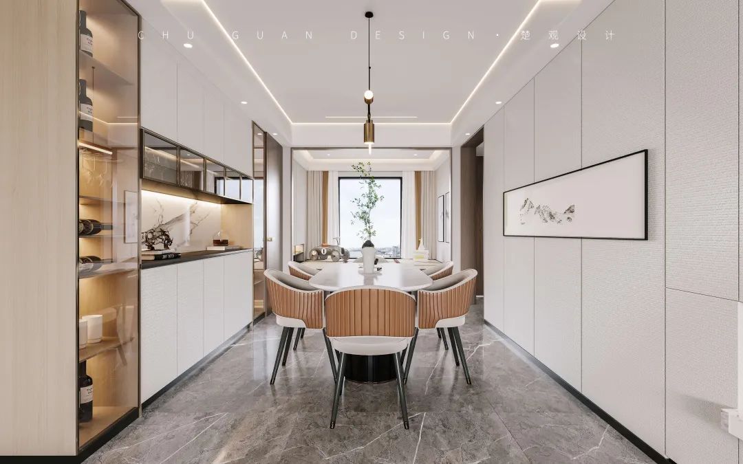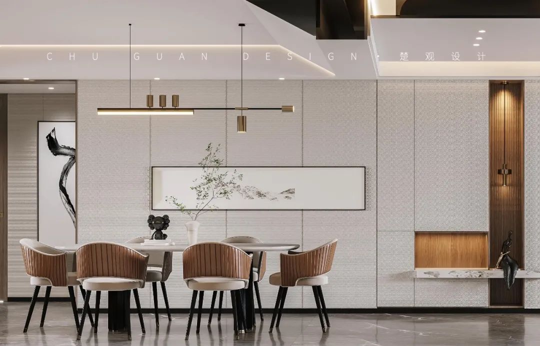 能突显品味。设计师将本案的设计关键词定为“自在、纯粹、温柔、迷人”,以一抹秋色注入,营造舒适的居住空间精神。讲究空间中情意的表现、势感的酝酿、